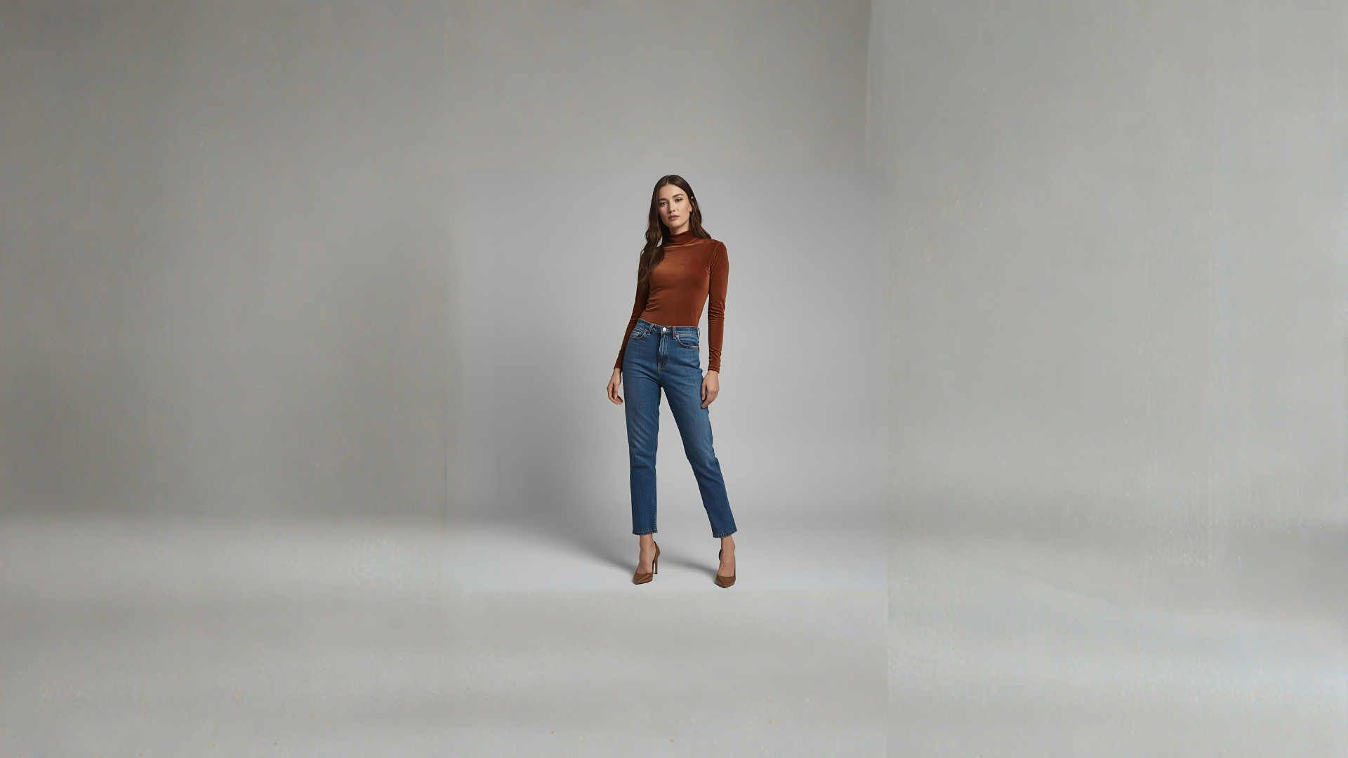 MIRELLA | Brown Fitted Long-Sleeve Turtleneck